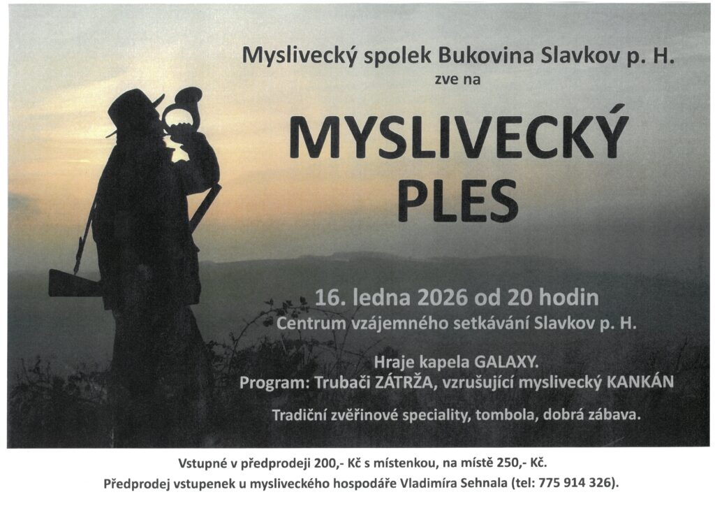 Myslivecký ples v pátek 16.1.2026 od 20 hodin v CVS ve Slavkově pod Hostýnem