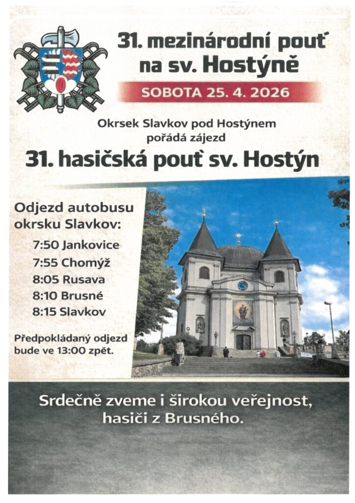 Pozvánka na pouť na sv. Hostýn v sobotu 25. dubna 2026.