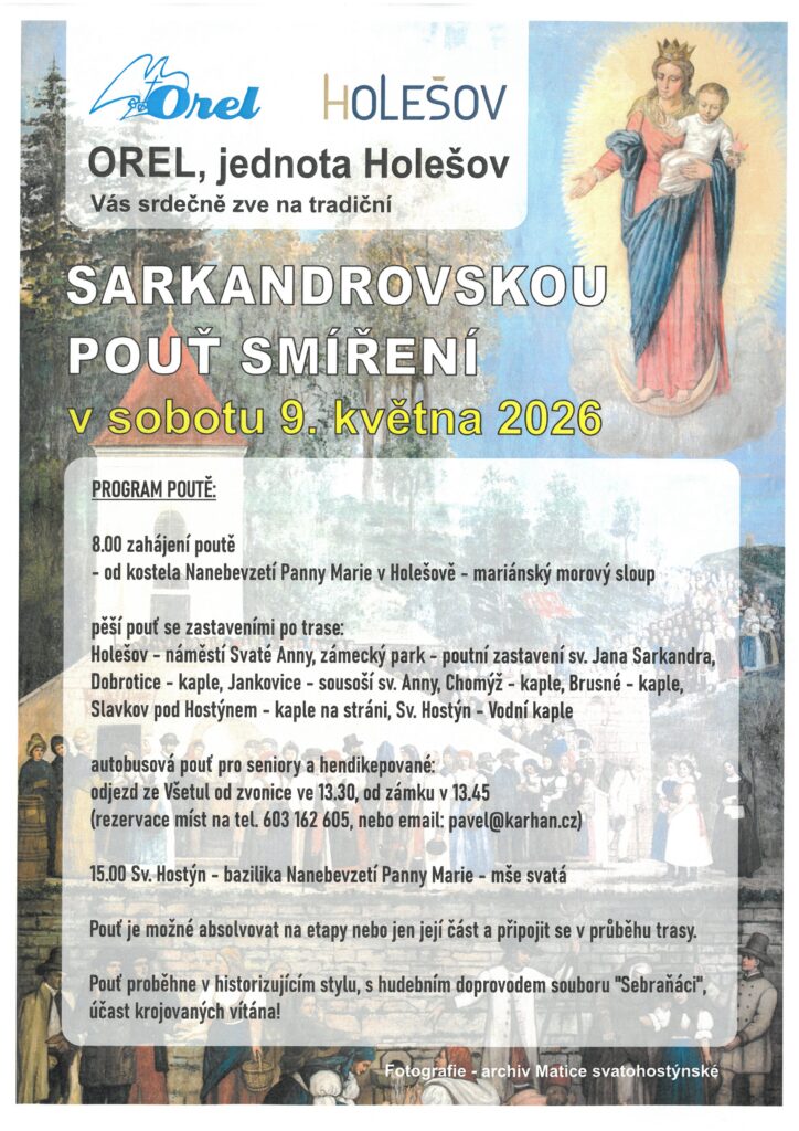 Sarkandrovská pouť smíření v sobotu 9. května 2026 u kapličky v Brusném cca ve 12 hodin.